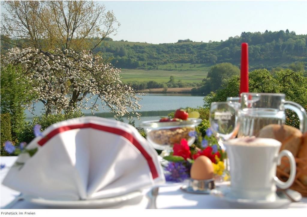 Aufmerksamer Service, persönliche Atmosphäre und ein herrlicher Blick auf das Schalkenmehrener Maar - das erwartet Sie in unserem familiär geführten Haus direkt am Vulkankratersee mitten in der wunderschönen Vulkaneifel.