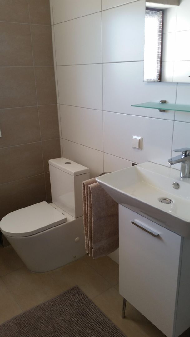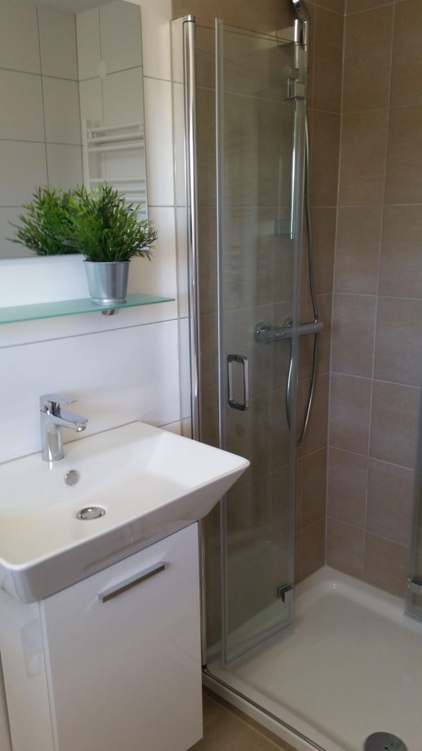 Im modernen Duschbad (EG) stehen Handtücher, Duschtücher sowie Fön und elektrischer Handtuchtrockner für Sie bereit.