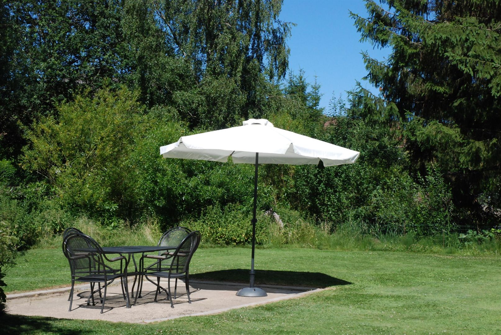 Beide Häuser sind mit einem 800qm Garten verbunden. Jedes Haus hat eine eigene überdachte Veranda mit Gartenmöbeln und Grillplätzen.