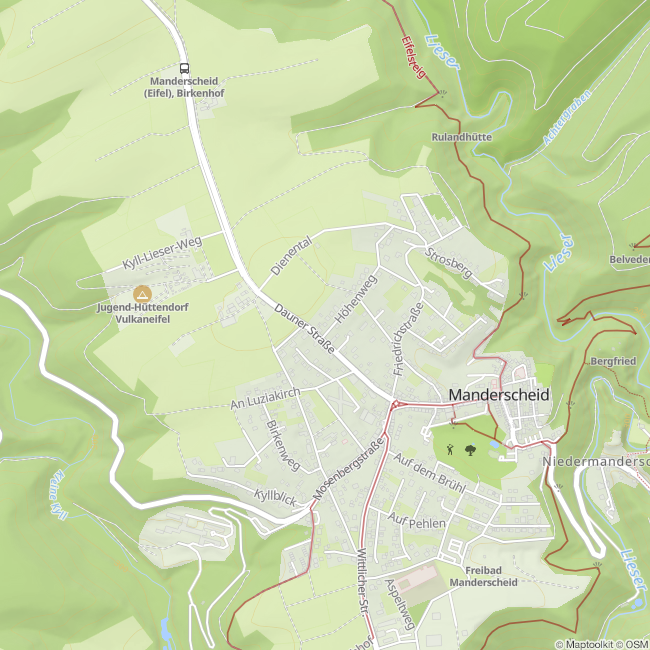 Einkaufsmöglichkeiten, Freibad, Heimat- und Maarmuseum und unsere zahlreichen Wanderwege wie Eifelsteig und Lieserpfad, sowie die Wahrzeichen von Manderscheid Ober- und Niederburg, sind fußläufig zu erreichen. Den neuen Burgen-Klettersteig erreichen Sie in wenigen Gehminuten.