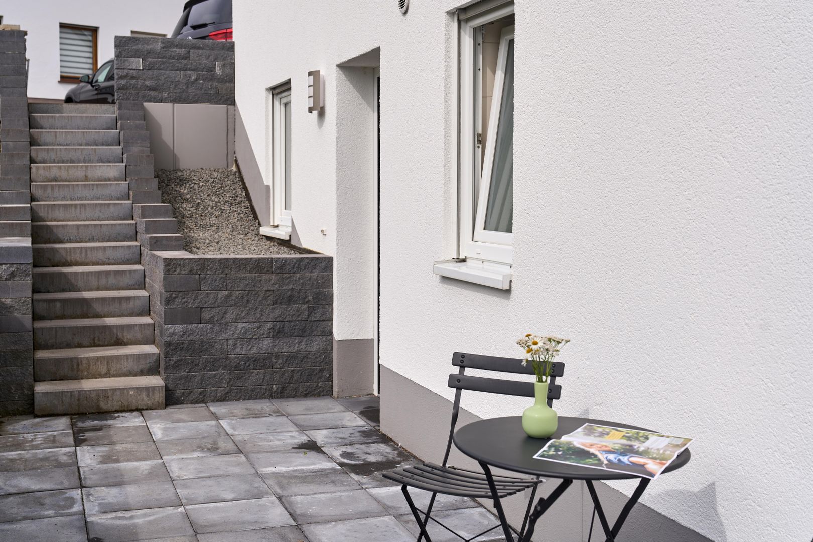 Die Wohnung liegt am Ortsrand von Mehren, mitten in der Vulkaneifel. Direkt vor der Tür beginnen herrliche Wanderwege wie z.B. die HeimatSpur Lehwaldweg. Die bekannten Maare – die „Augen der Eifel“ – sind nur 2,5 km entfernt, der beliebte Maare-Mosel-Radweg ist in wenigen Minuten erreichbar. Restaurants und Einkaufsmöglichkeiten sind ebenfalls bequem zu Fuß erreichbar.