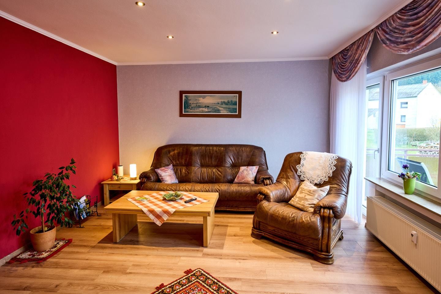 Im Untergeschoß mit separatem Hauseingang befindet sich das Badezimmer und der Abstellraum. Im OG ist das Doppelschlafzimmer, ein Einzelschlafzimmer, Wohnzimmer mit Balkon, Küche mit Spümaschine und Mikrowelle, Gäste WC.