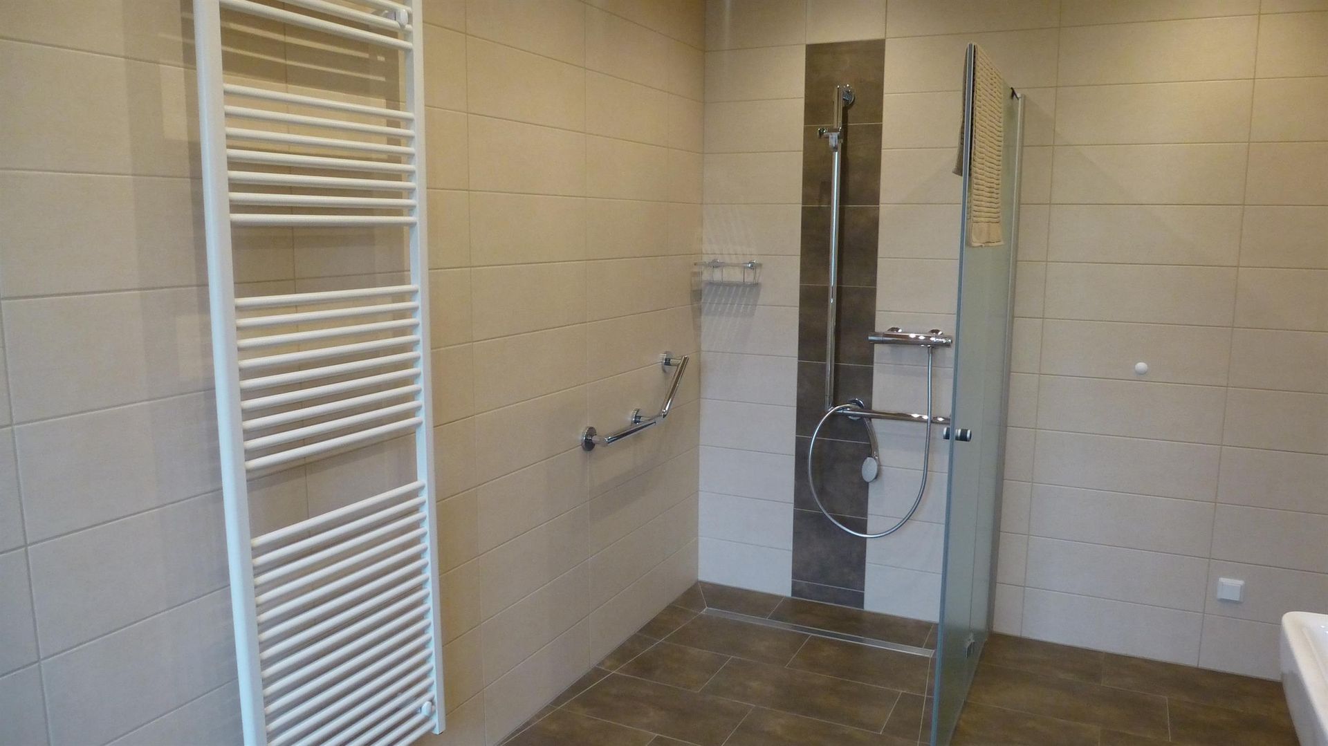 Im Behindertengerechten Bad befindet sich eine ebenerdige Dusche, WC sowie 2 Waschbecken.