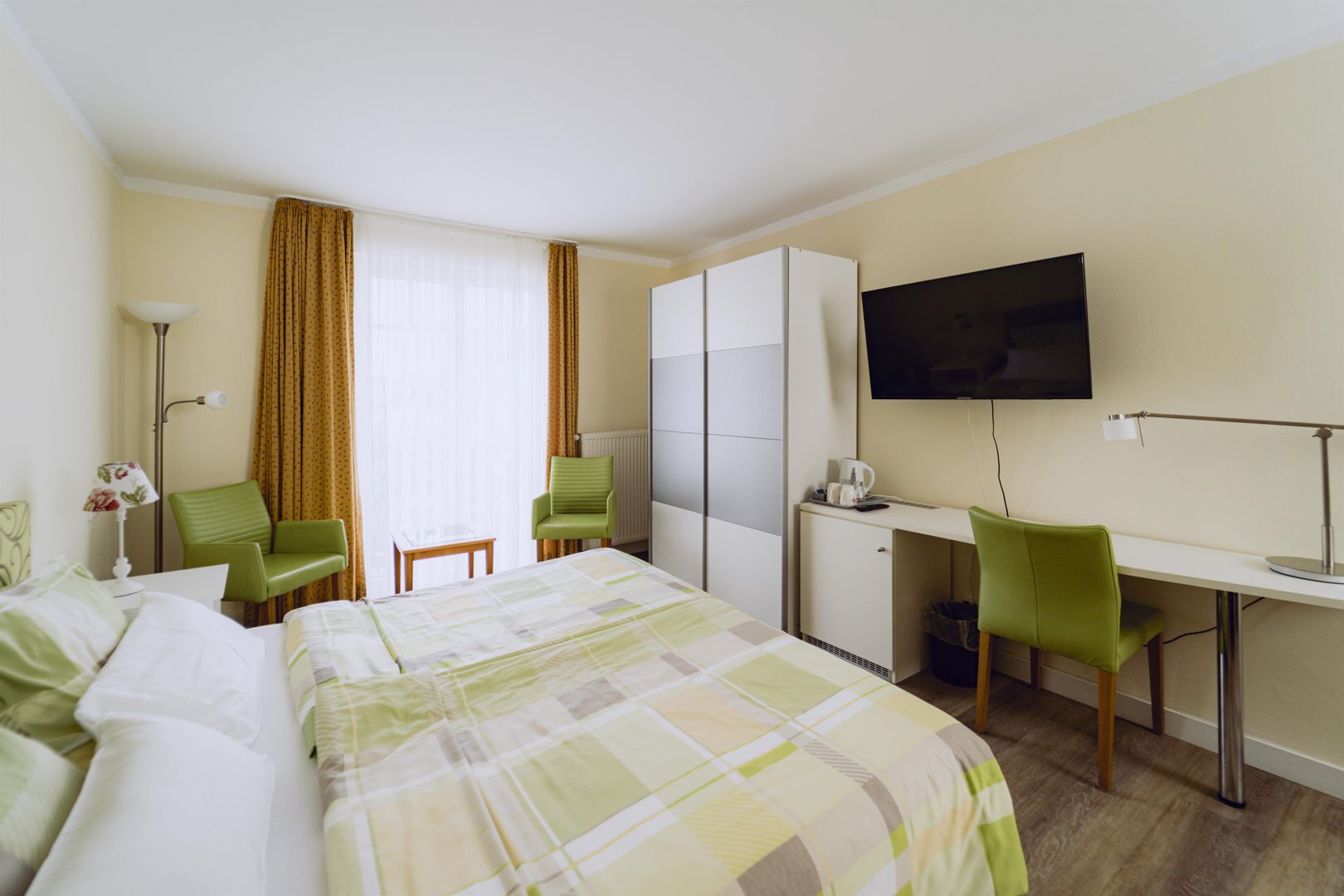 Unsere 25 komfortablen Nichtraucher-Zimmer, meist mit französischem Balkon, sind mit Dusche/WC/Föhn, TV, Schreibtisch u. gemütlicher Sitzecke ausgestattet. Kostenfreie Parkplätze sind verfügbar und Motorradgarage.