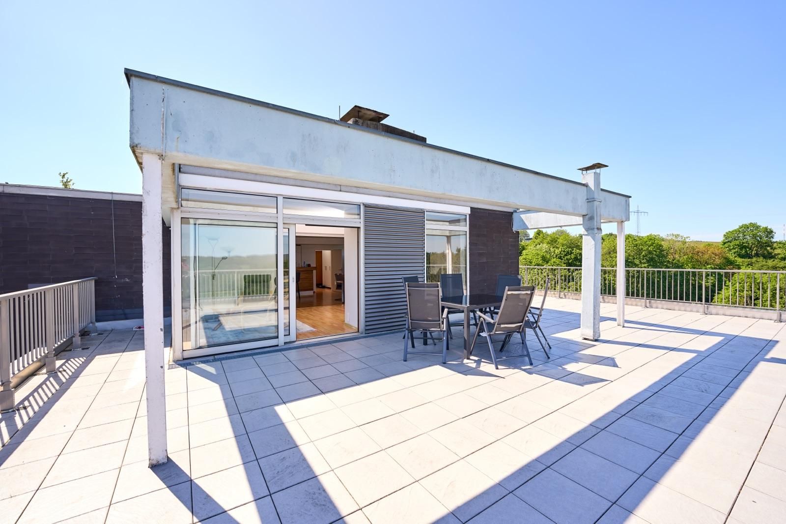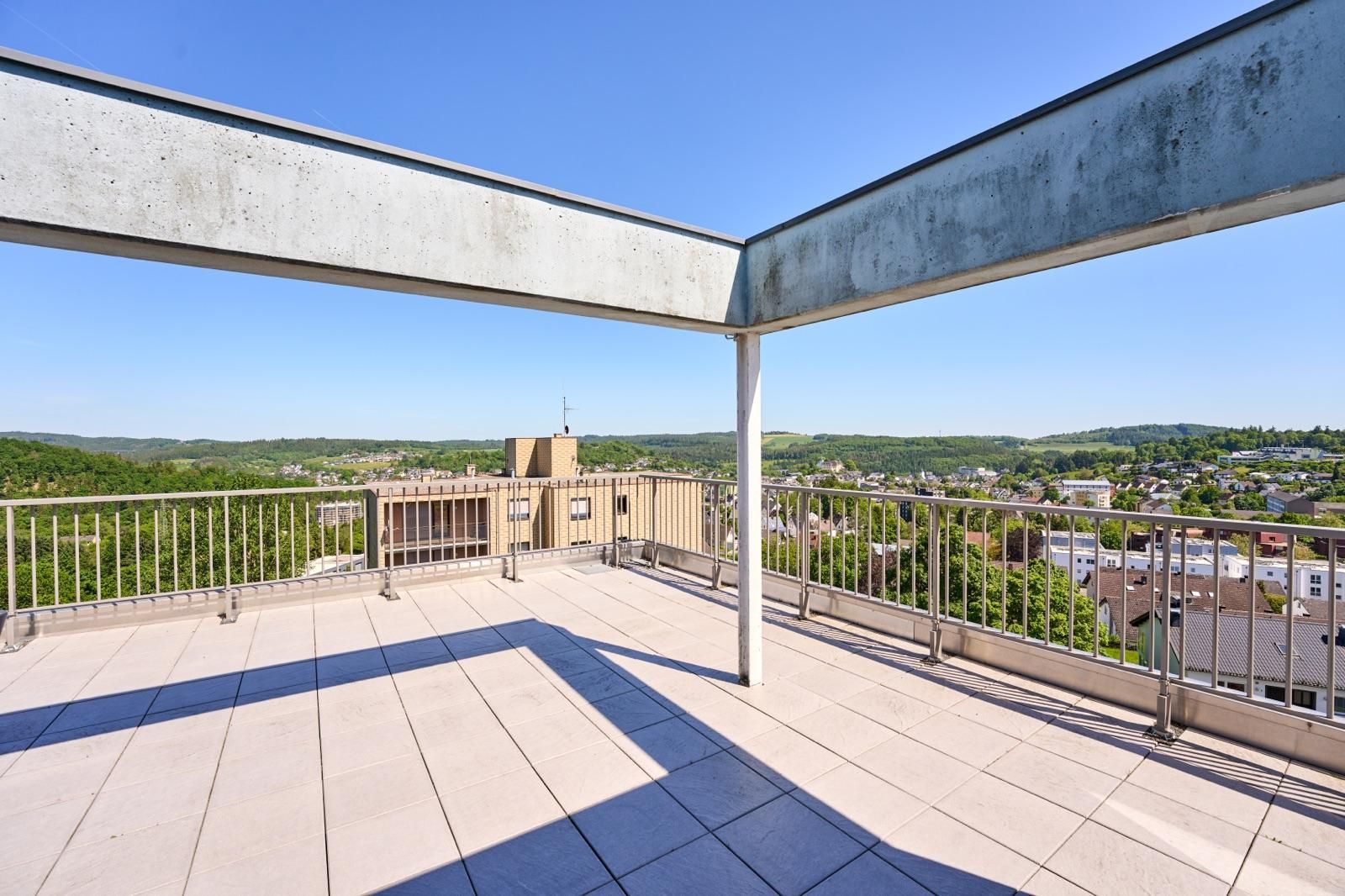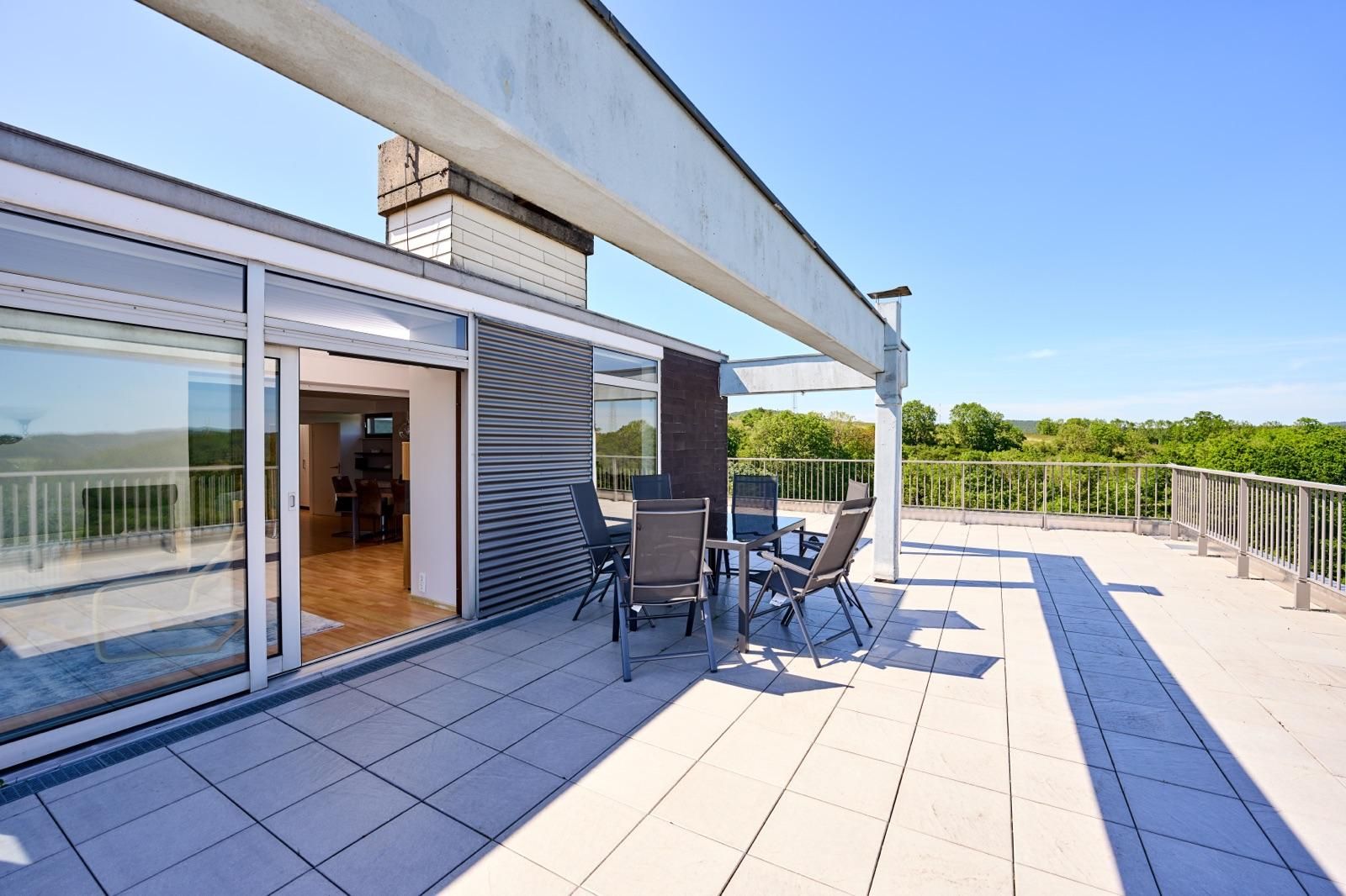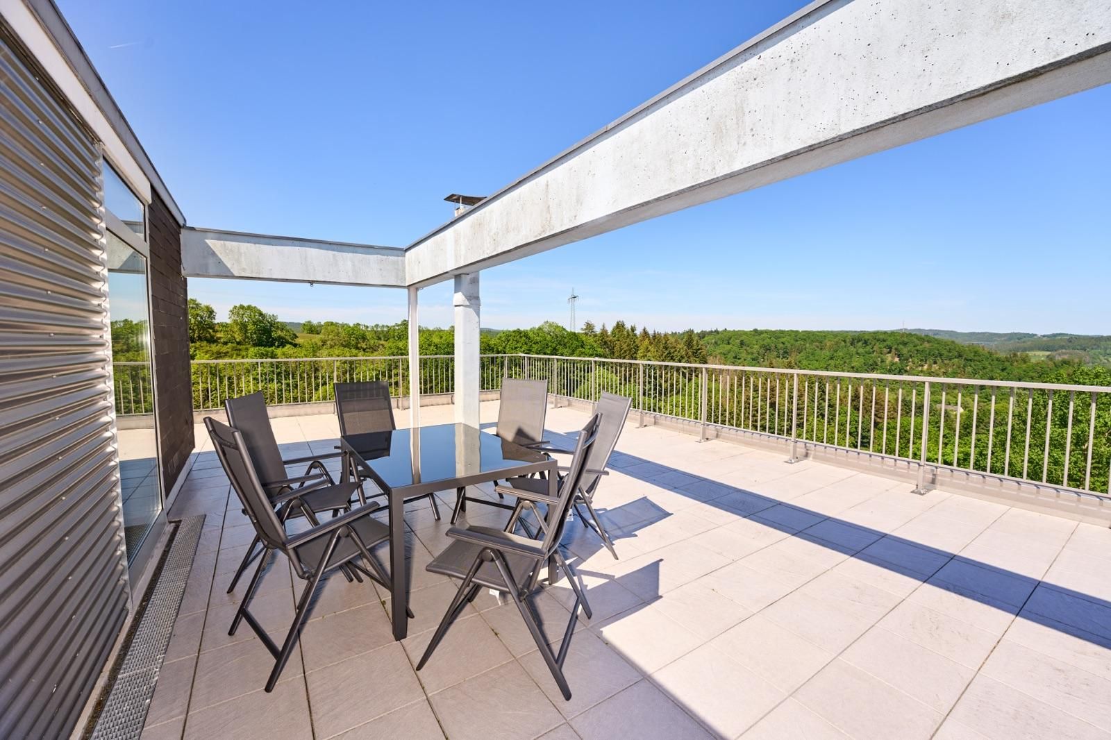 Die Ferienwohnung mit ca. 95 qm Wohnfläche liegt in der obersten 6. Etage eines Mehrfamilienhauses und bietet einen unvergleichbaren Blick auf Daun.