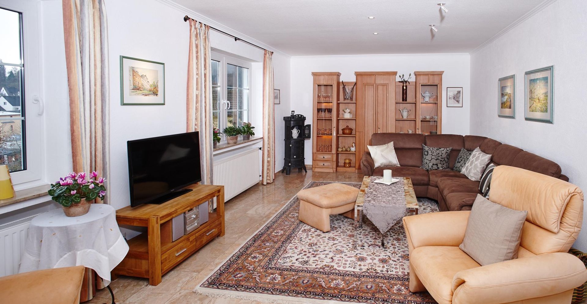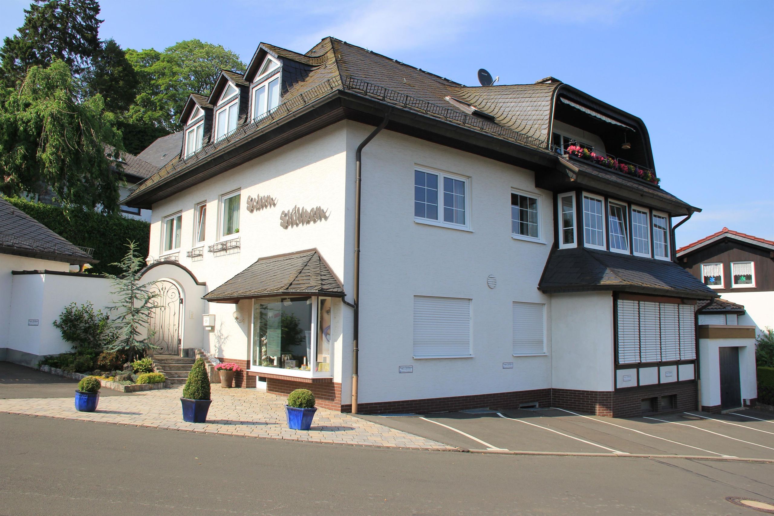 Ihre Ferienwohnung liegt in zentralster und trotzdem ruhiger Lage mitten in Daun. Alle für den Gast wichtigen Einrichtungen, Geschäfte, Restaurants usw. sind in wenigen Minuten zu Fuß erreichbar. Die Ferienwohnung mit 105 qm Wohnfläche liegt in der mittleren Etage des Hauses und ist von der nicht einsehbaren Gartenseite zu betreten. Der Garten mit Terrasse und Rasenfläche ist umrahmt von einer 4 Meter hohen Wallmauer, die den Dauner Burgberg im Halbkreis umschließt. Der Maare-Mosel-Radweg ist nur wenige hundert Meter entfernt und bequem anzufahren. Zum Haus gehören eine großzügige Doppelgarage mit der Möglichkeit ein Auto sowie Fahrräder abschließbar abzustellen sowie hauseigene Parkplätze.