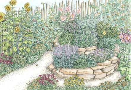 Die Kräuterspirale erweitert das Standortangebot für Pflanzen im Garten.
